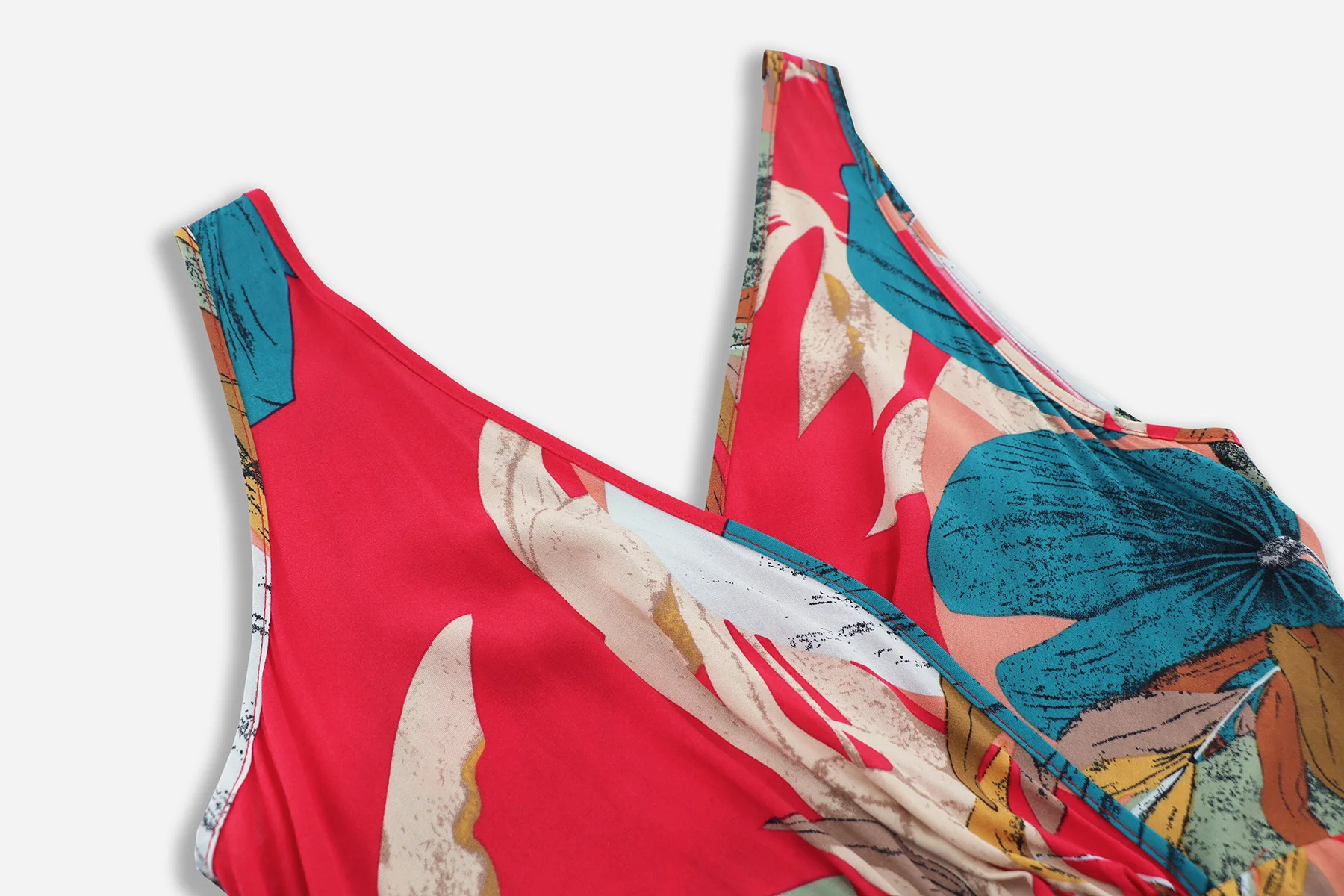 1 review for Amazon European and American Women’s 2024 Summer New Double V-neck Sleeveless Split Printed Long Strap Dress for Women