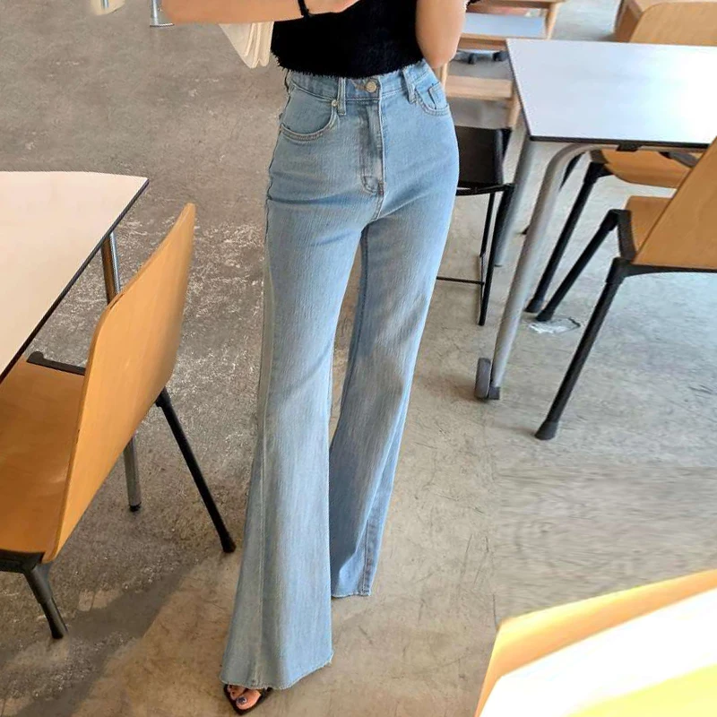 Chic High Waist Straight Leg Micro Flared Jeans Women’s Slimming Versatile Long Pants Summer Denim Blue Casual Fashion