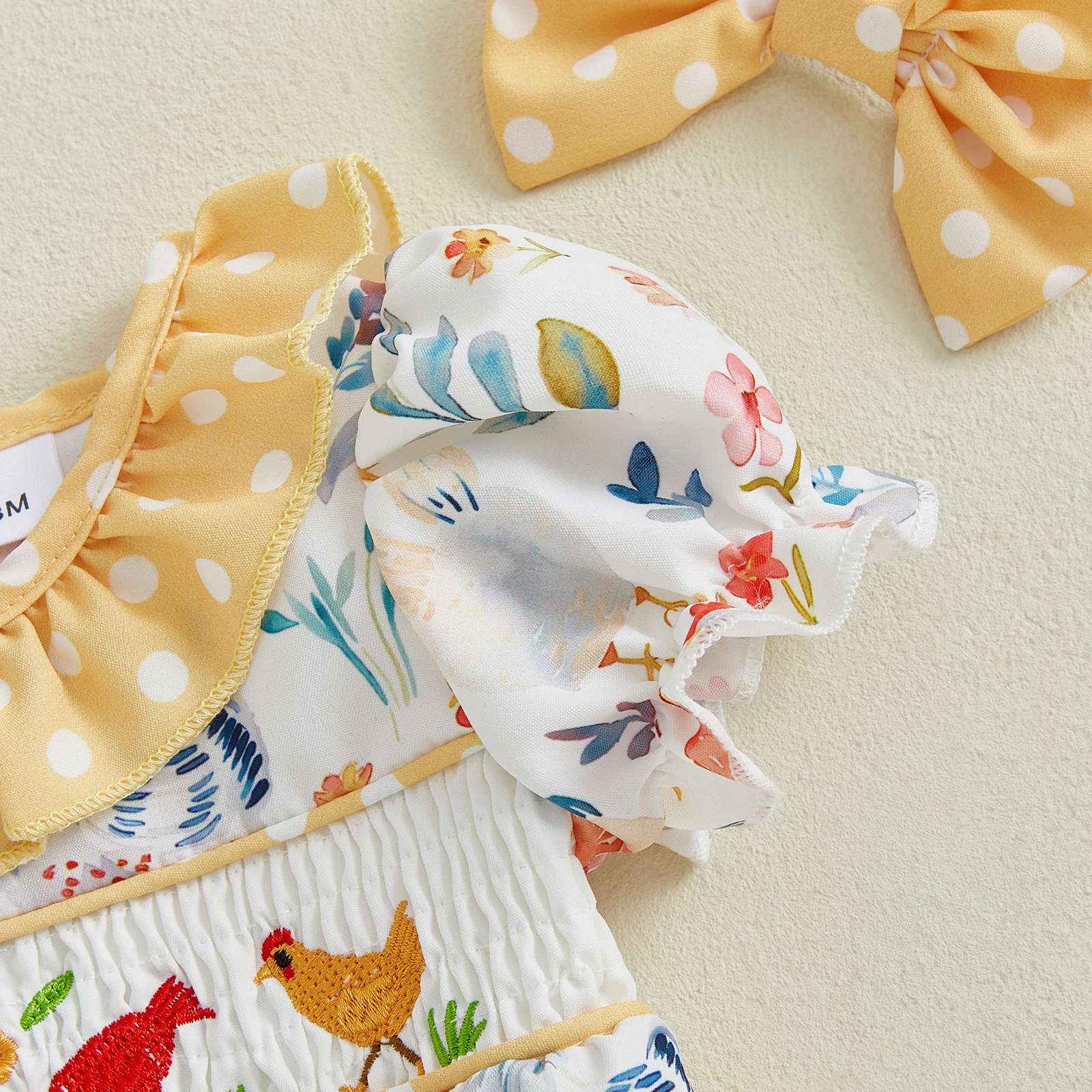 MISOWMNJOY Cute Cartoon Animal Baby Girls Summer Romper Short Sleeve Flower Chick Print Newborn Jumpsuit with Headband Clothes